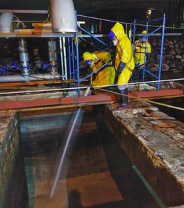 Limpieza especializada mediante el uso de chorro de agua a alta presión, con bombas hidrolavadoras con un rango de 0 a 5,000 lbs/pulg2 y limpieza mecánica que combinada con métodos físicos, ayuda a la desincrustación y eliminación de residuos, depósitos de sarro y sales acumulados en instalaciones como fluxes, calderas, reactores, condensadores, intercambiadores de calor, enfriadores, entre otros, los cuales se ven afectados en su funcionamiento y disminuyen su eficiencia térmica.